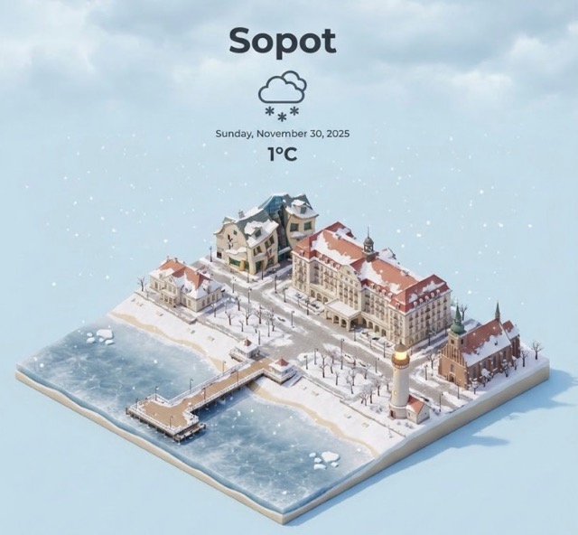 Prompt:Present a clear, 45° top-down isometric miniature 3D cartoon scene of Sopot, Poland, featuring its most iconic landmarks and architectural elem