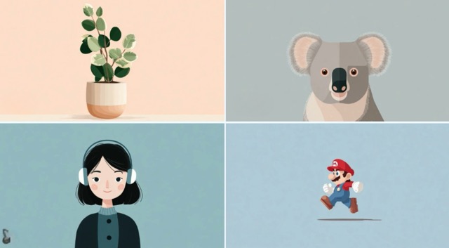 Prompt:A flat design illustration of a [subject], presented in a front-facing, minimalistic style. Set against a plain [background color], the artwork