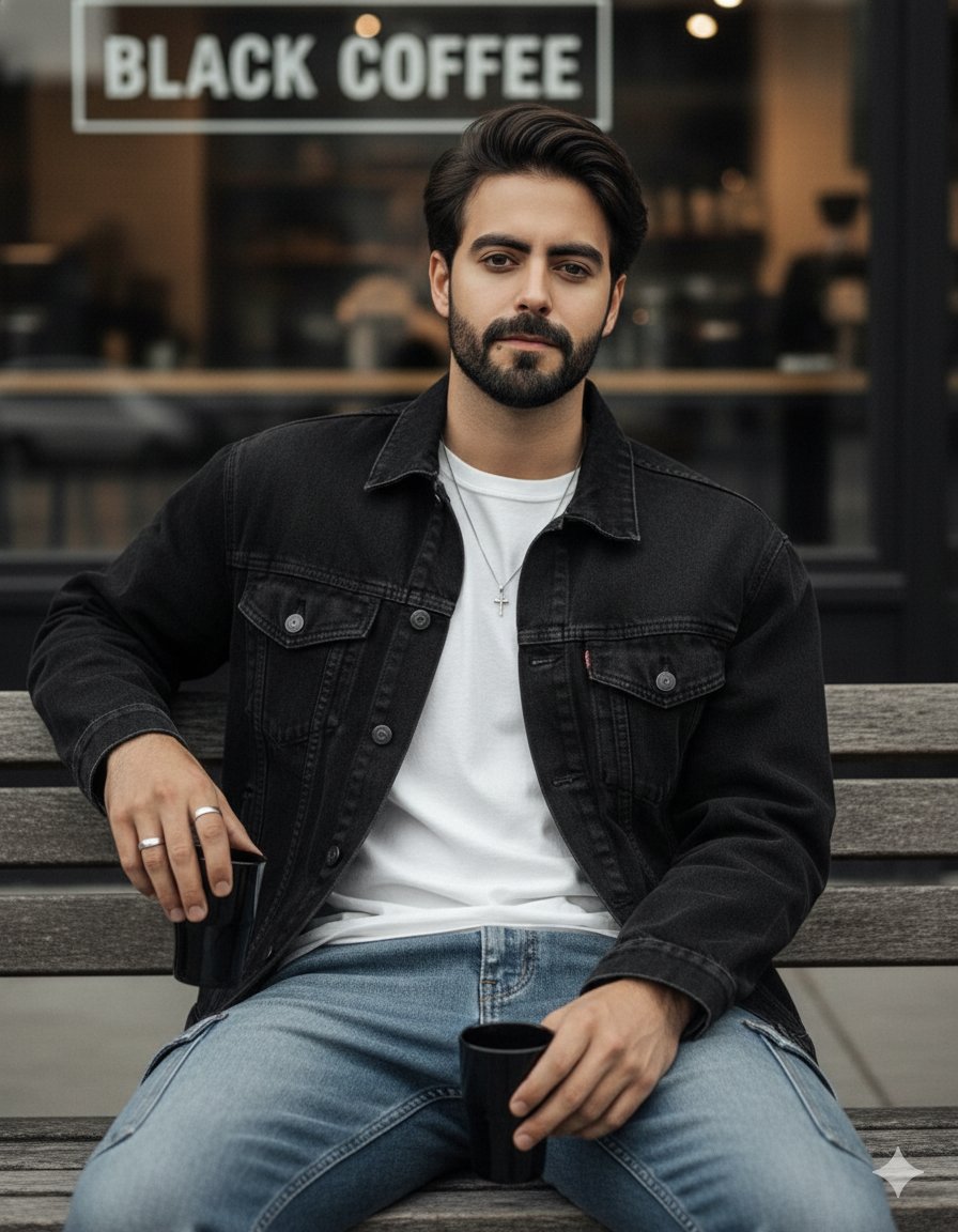 A highly realistic portrait of a man based on the original model (facial structure, hairstyle and body must be 100% identical to the reference image -