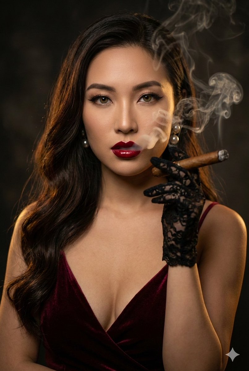womanportraitphotorealisticcinematicstudiosubjectfaceintofemalehairshotclosedressblackwhitelongasiangoldensoftlightingdarklightconfidentbrowncameratypeprofessionalnaturaloutfitpremiumfloral