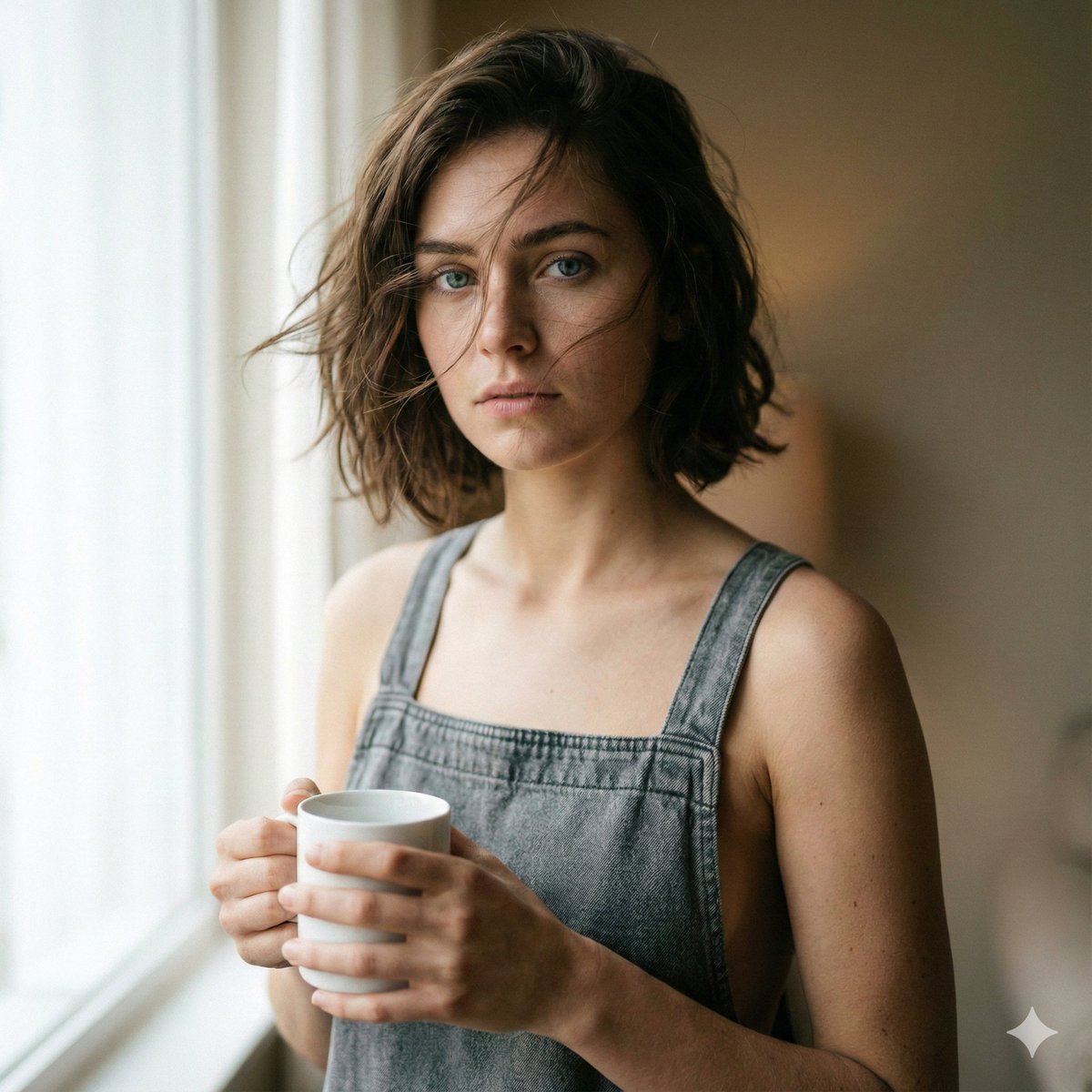 womanportraityoungphotorealisticcinematichypersubjectfacephotographyhairshotdressvintagewhitesettingsoftbeautifullightingaestheticlightwearingdigitalinteriorstandingnaturaloutfitrenderverticalcoffee
