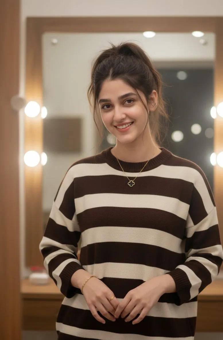 womanportraityoungmirrorstudiosubjectfacephotographymodernhairlifestylecozysoftlightingroomaestheticbrowncameraobjectivecandidtypestandingnaturalindoorcleanintimate