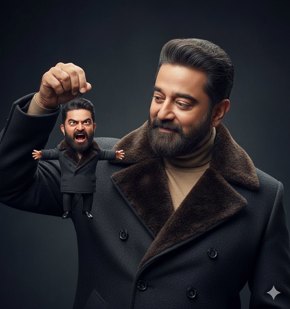 portraitcinematichyperstudiointonanobananahairsamesoftlightingdarkwearinggeminicaricaturedslrhand