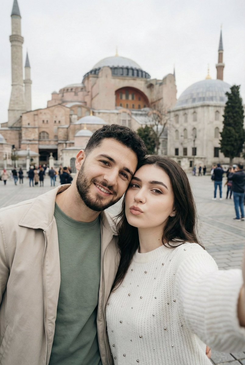 Lifestyle Portrait of Couple at Historic Site (JSON Prompt)