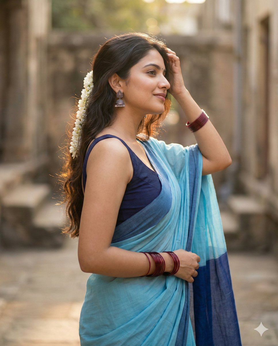 Photorealistic portrait of woman in saree with DSLR settings