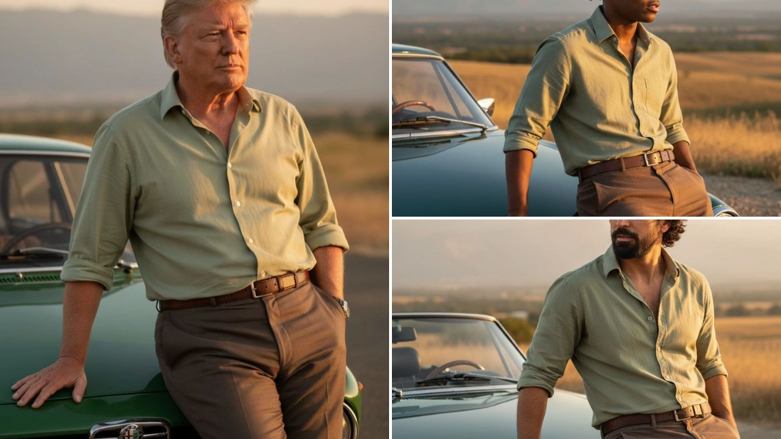 Prompt:A cinematic portrait of myself, keeping my exact face unaltered. I am standing outdoors next to a classic green Alfa Romeo car, leaning casuall