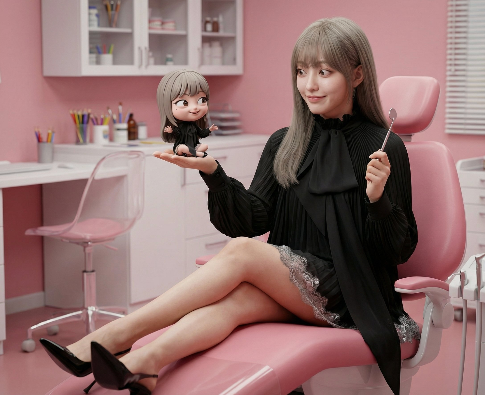 womanportraitcinematicmirrorscenefaceminiaturemodernhairuploadedwhitepersonsoftlightingsurrealsittinglightpinkfacialchibifeaturesfigureadultprofessionalnaturalcleanhand