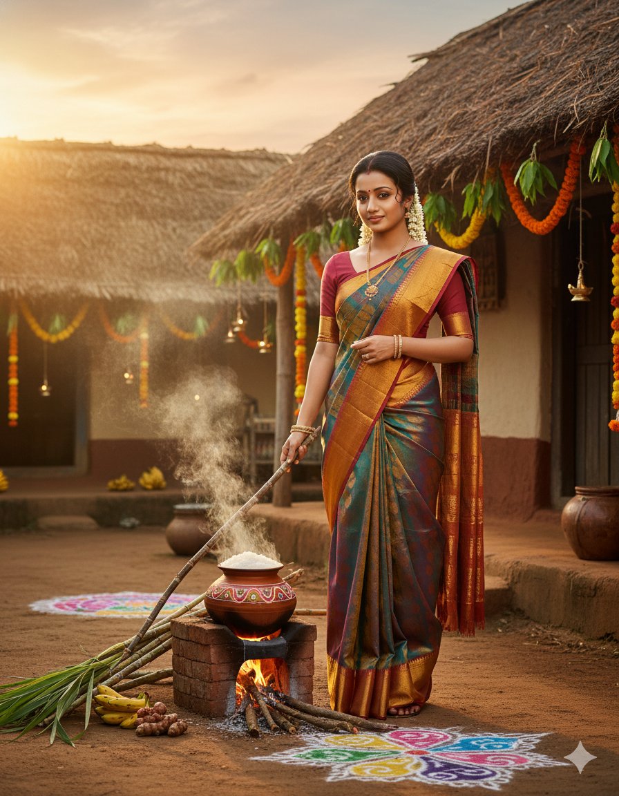 Realistic South Indian Woman in Traditional Festival SettingRain-soaked Neo-Tokyo street style with glitch effects