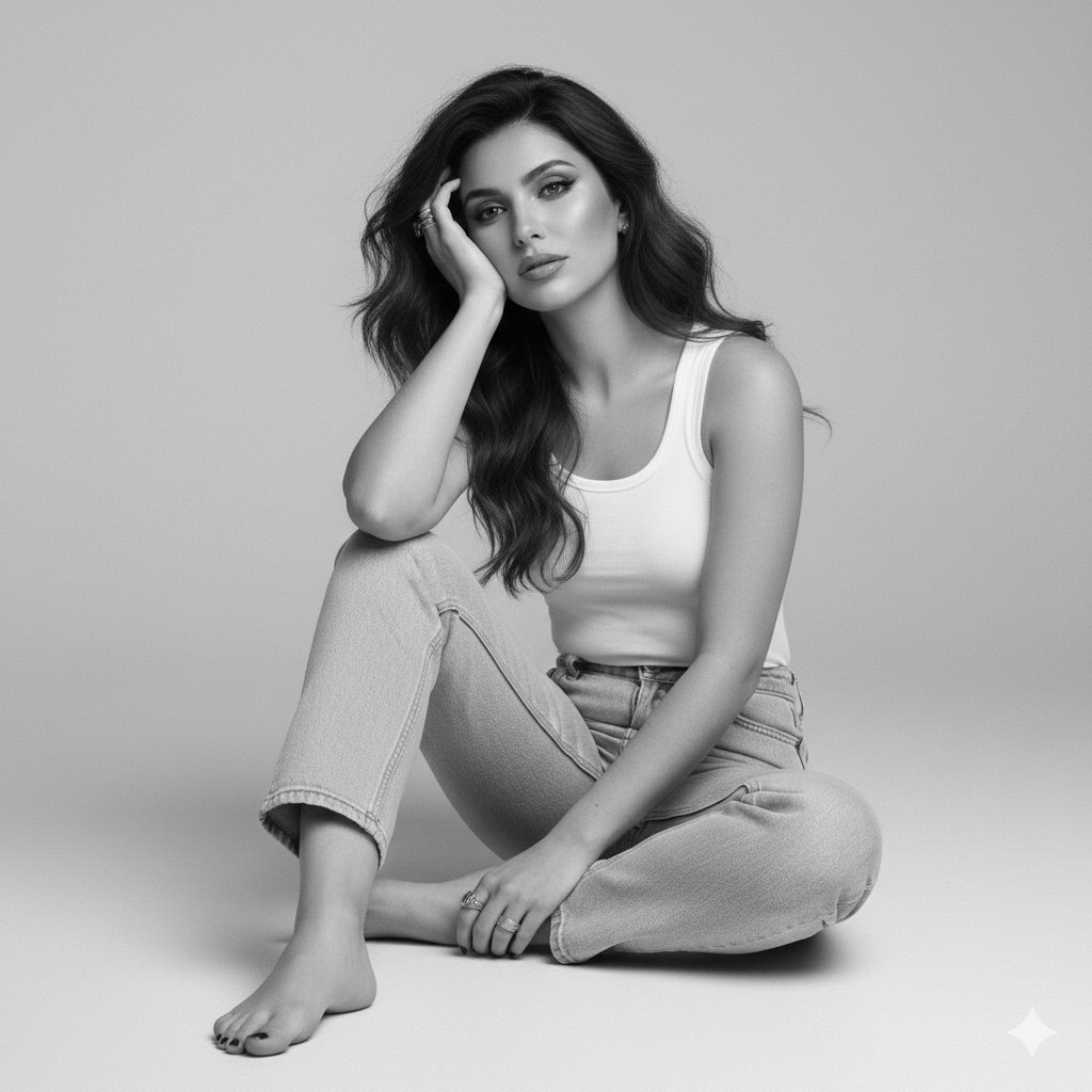 Serene Woman Portrait in Minimalist Studio