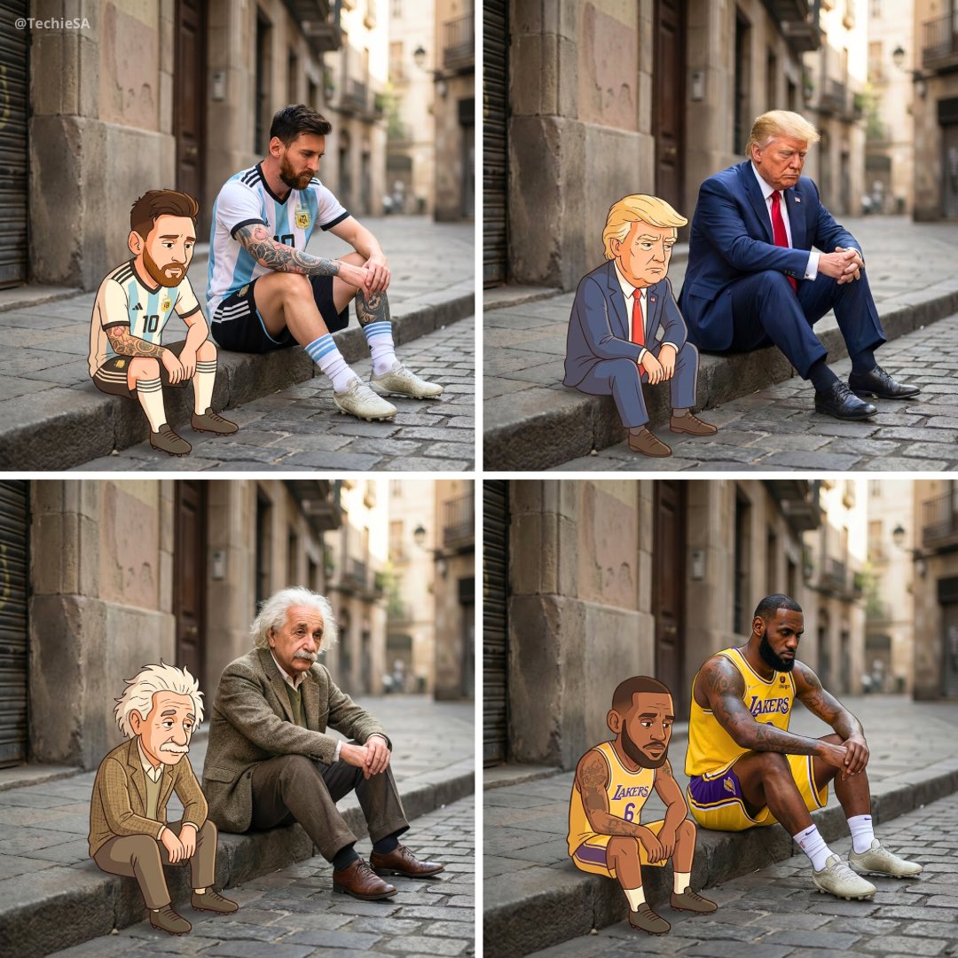 Street Portrait with Cartoon Version, Mixed-Media Style