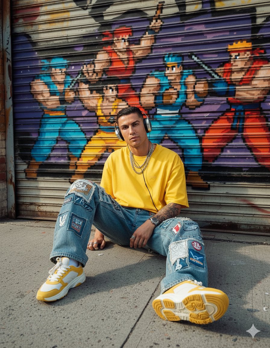 Streetwear portrait with retro graffiti backdrop