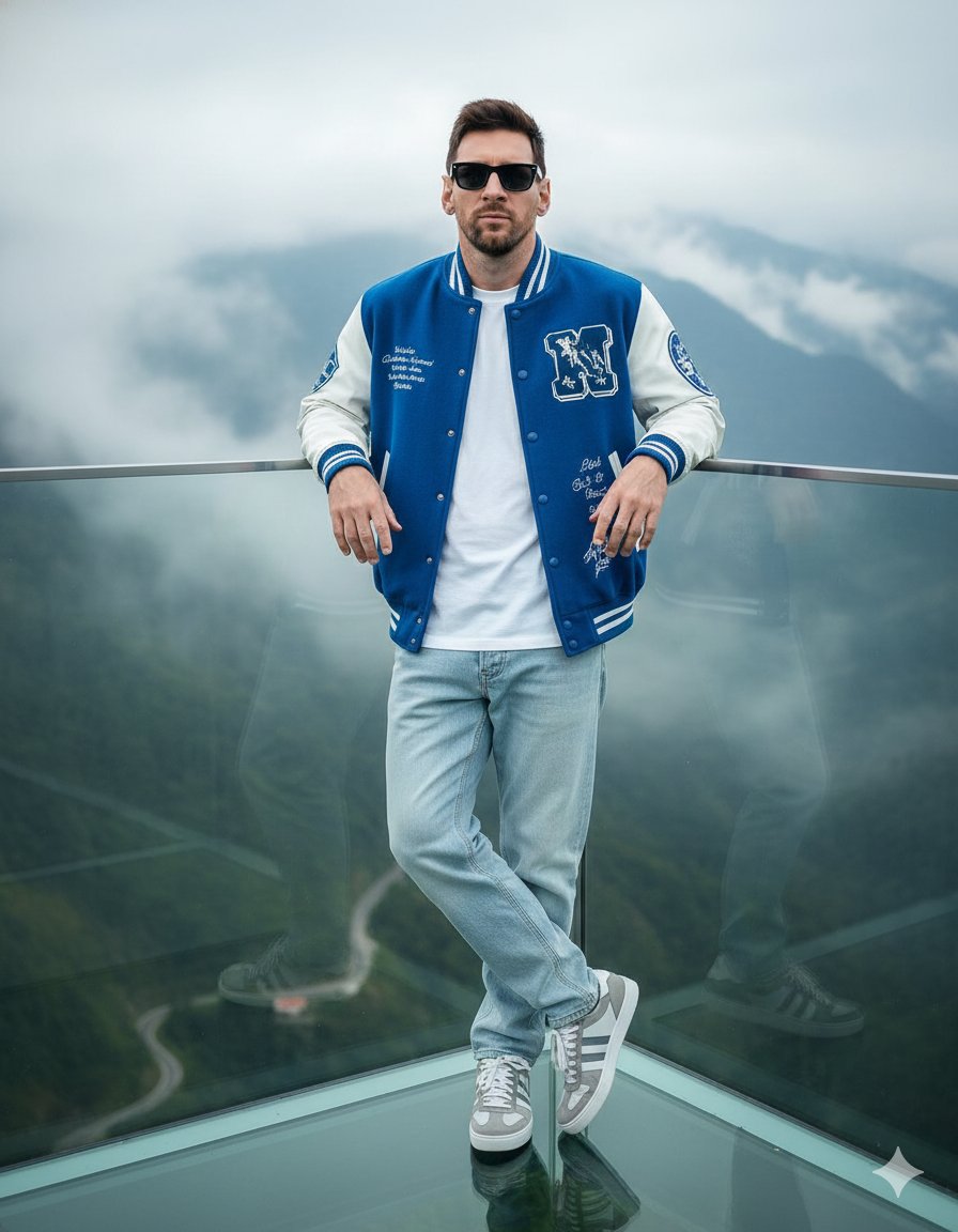 Ultra-realistic cinematic photo, professional DSLR quality, 8K detail, portrait orientation. A fashionable young man (use reference image, identity p
