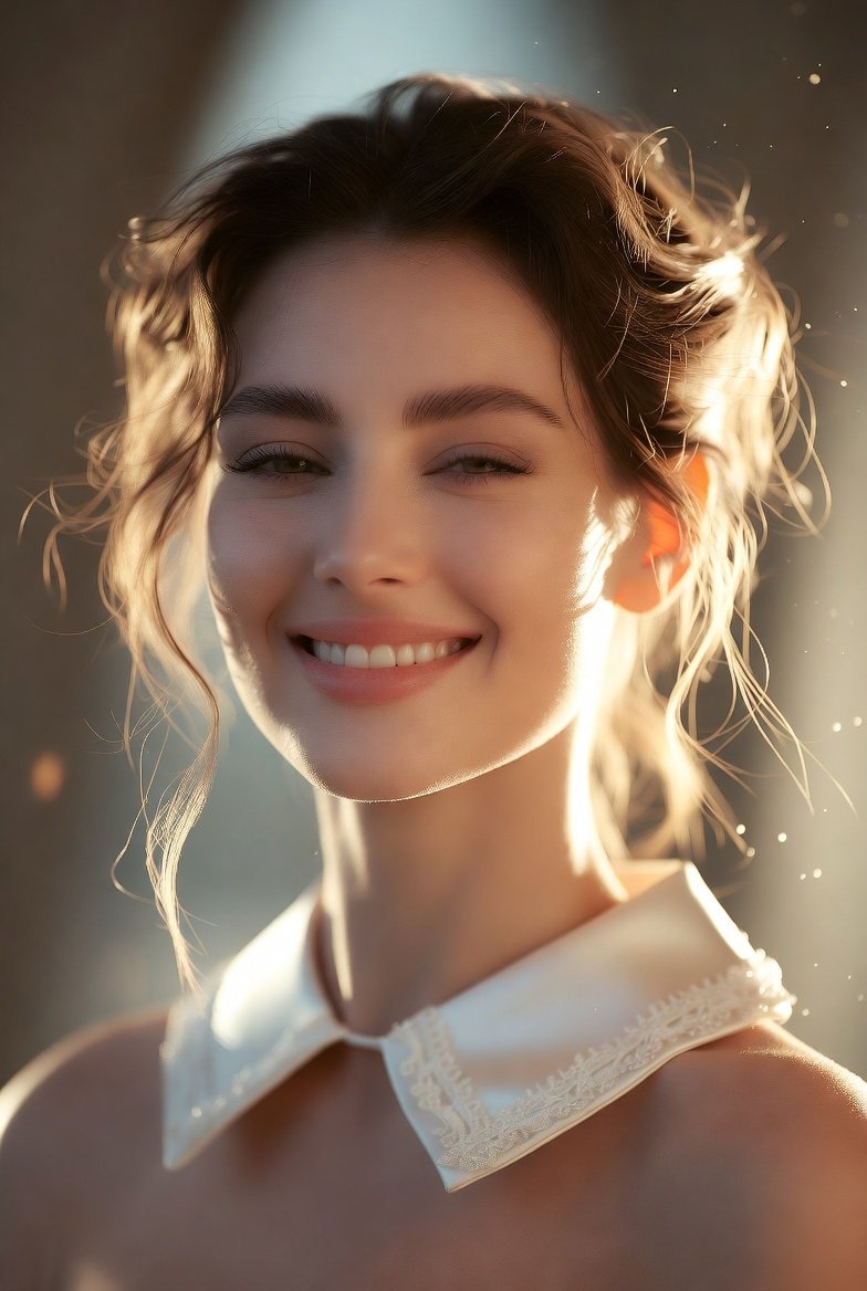 "pose": "female tight portrait with graceful neck posture",