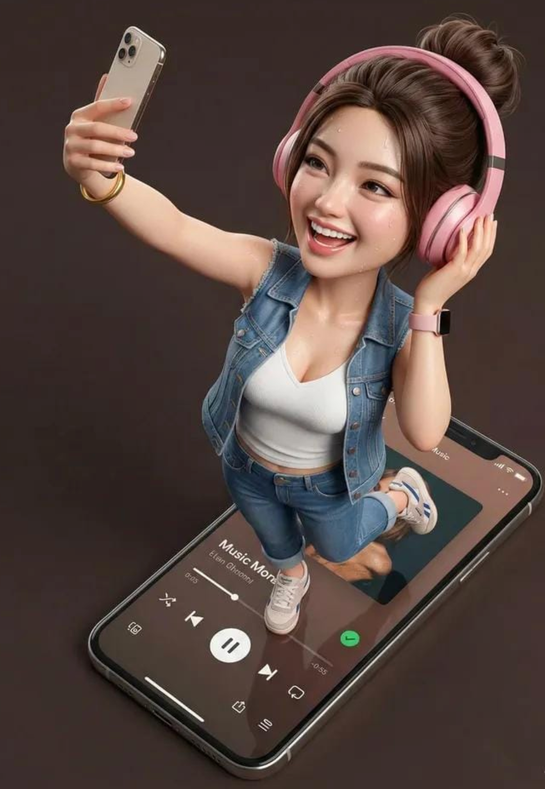 selfiestudiofacemodernfemalehaircharacterwhitesoftlightingdarkstylishgiantanglepinkwearingchibifigurebrowncameracutesmartphonestandingnaturalclean
