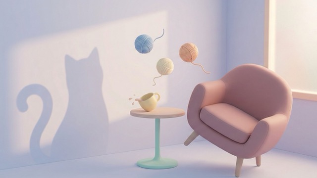 Prompt:A scene where [Character] is implied but not visible - furniture slightly moved, objects mid-air, shadows showing their shape, pastel color pal