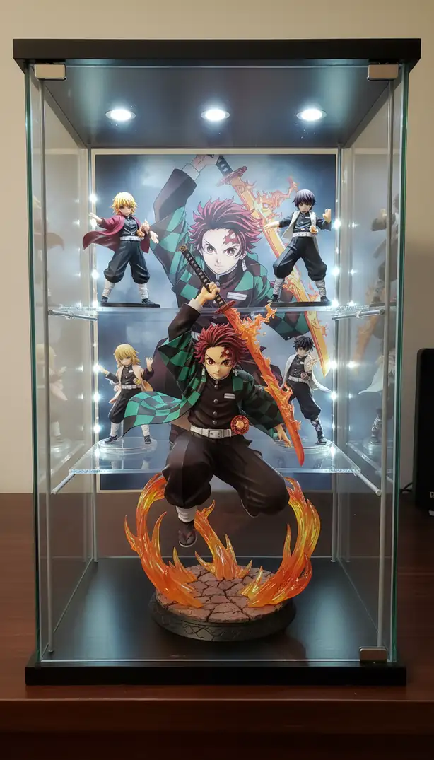 Transform this into a premium anime figure with dynamic pose, detailed clothing textures, and vibrant colors. Place it in a collector's display case w