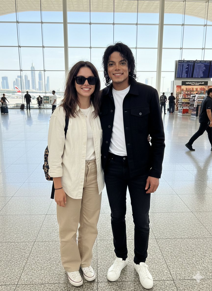 Michael Jackson and a fan at Dubai Airport - Realistic Photo