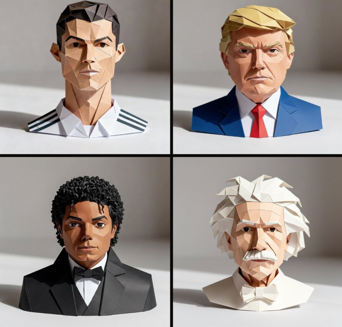 Prompt:A hyper-detailed origami version of [SUBJECT], folded from high-quality paper with crisp edges and realistic paper texture. Intricate folds cap