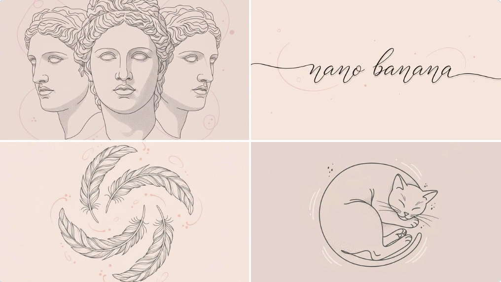 Prompt:A minimalist line art illustration depicting [SUBJECT], arranged in a fluid, overlapping composition. The style is clean and elegant, with deli