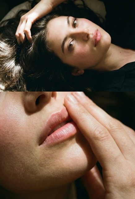 Prompt:Two-part photo Don't alter facial features Create a...Prompt:A high-angle, top-down POV shot of a young woman...