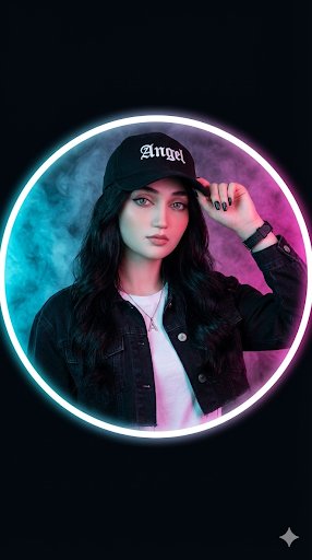 Prompt ⤵️ Edit A circular profile picture (circular profile picture) with a dark black background outside of the circle. Subject: A beautiful young