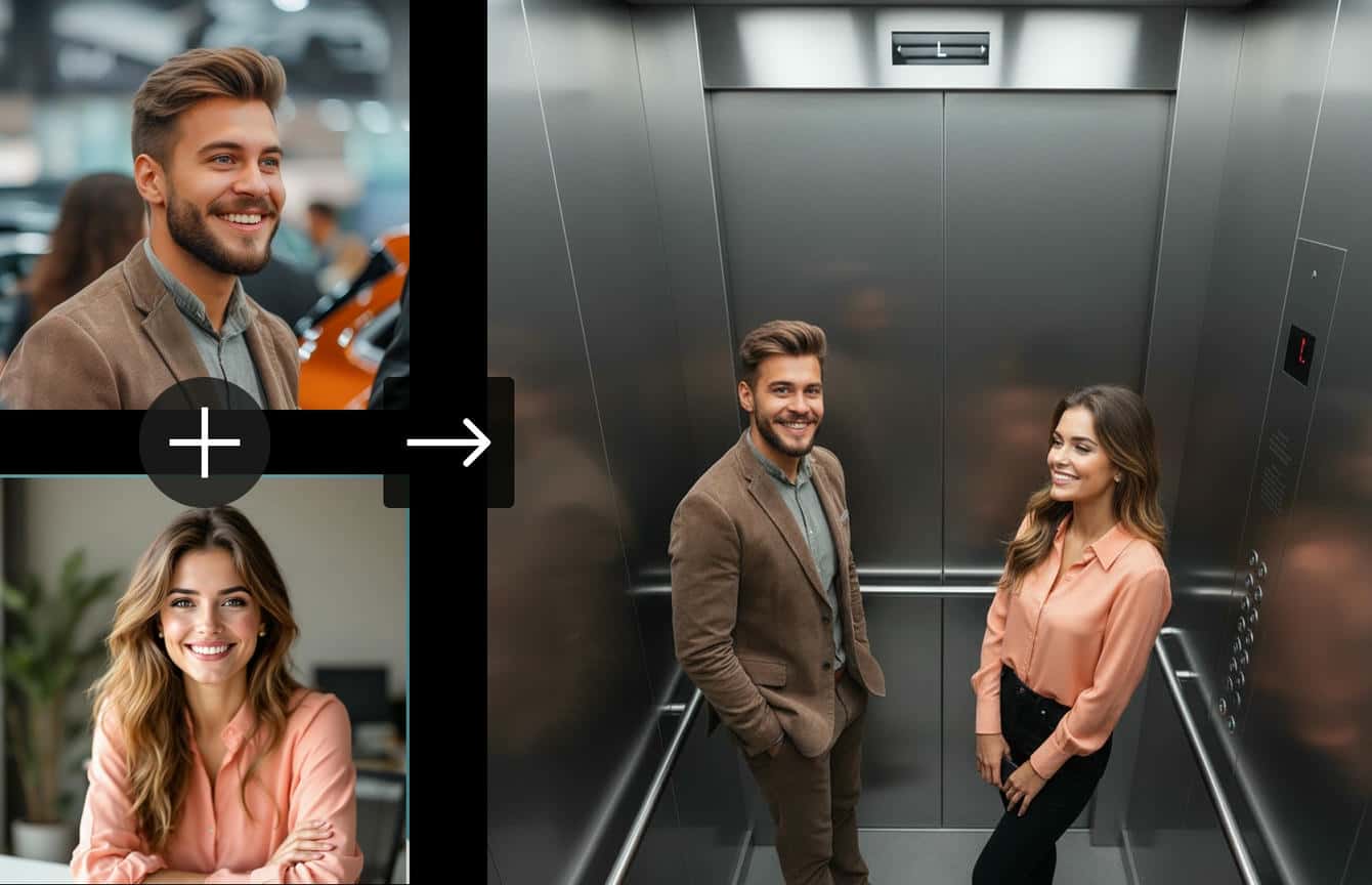 Transform into a realistic elevator photo. The scene takes place inside {elevator_style} with cinematic lighting, clean details, and a realistic overh