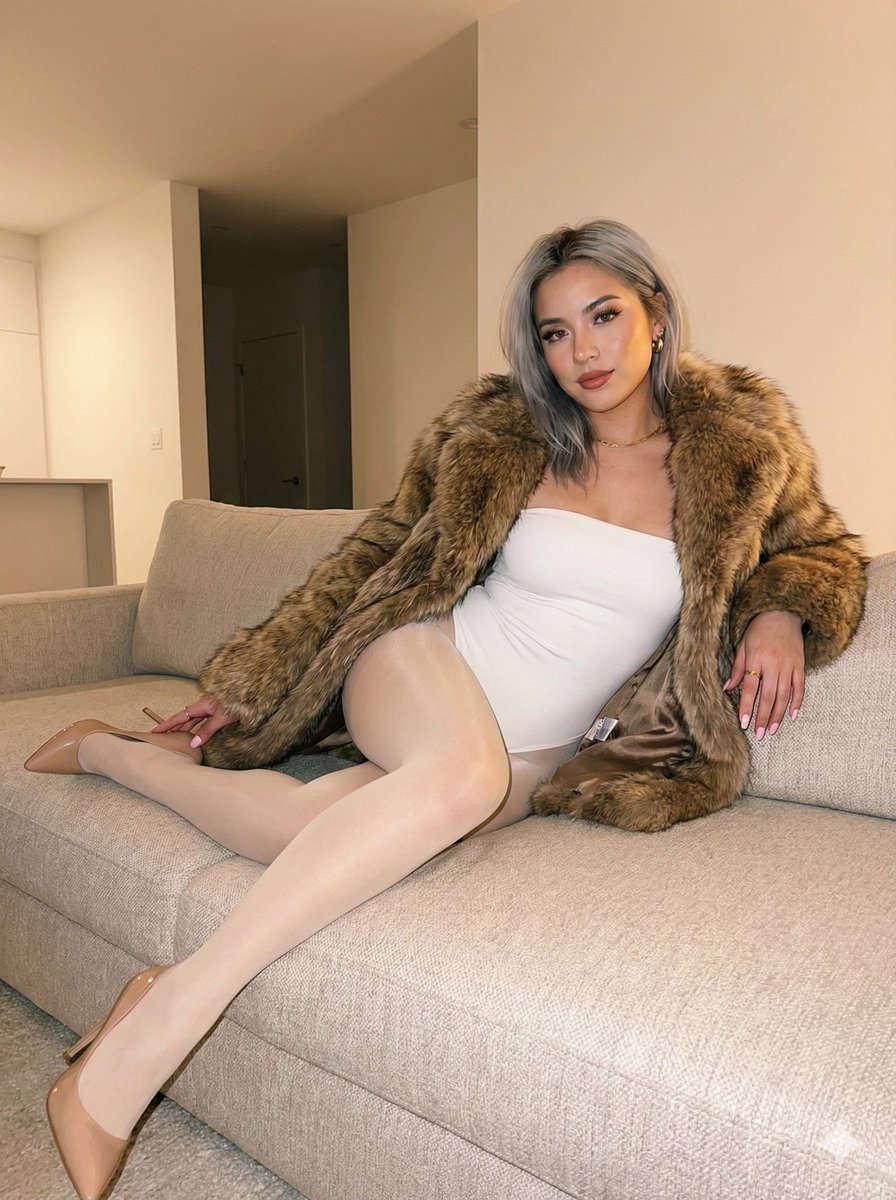 Young woman in fur coat, minimalist apartment, high-quality photo{ "task": "image_generation", "style": "photorealistic, li...